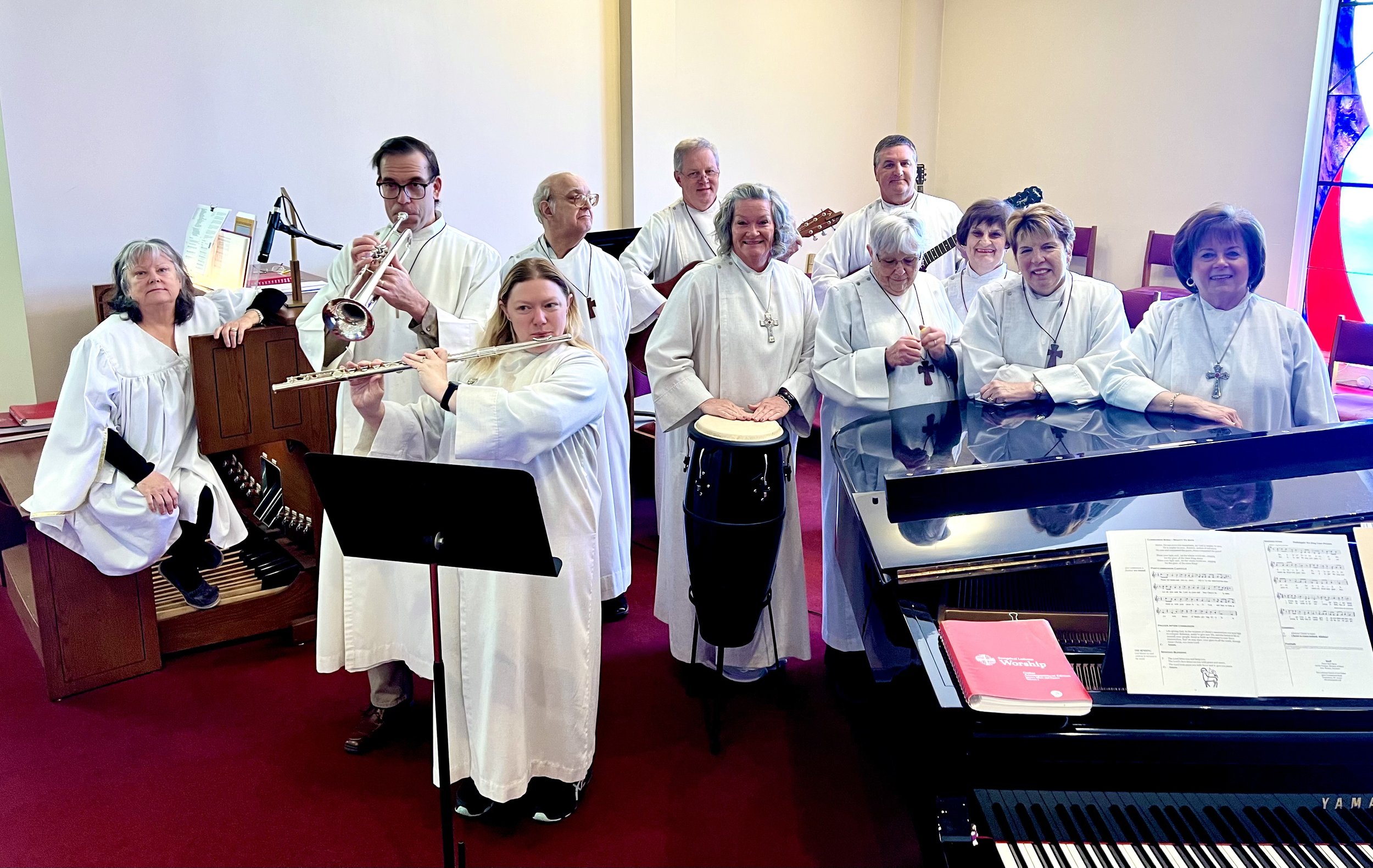 A lot of worship these days gets categorized as “traditional” or “contemporary.” We try not to limit ourselves with that type of thinking. Worship at Our Father doesn’t fit in any one category. Sometimes we use the organ. Sometimes we use flutes or trumpets or guitars. Sometimes we sing old hymns. Sometimes we sing new hymns or contemporary songs. Sometimes we recite old words that have been used for generations. Sometimes we speak new words that are written specifically for here and now. Whatever we do, it’s all printed in the bulletin – all of the words, prayers, and songs – to make sure you’re able to fully participate. We want you to feel comfortable! Here is a sample bulletin to show what we mean.